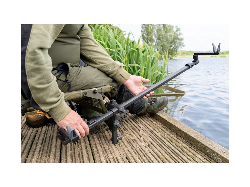 Premení jednu nohu kresla alebo seatboxu na stabilnú opierku pre prút. Tento teleskopický feederový držiak je ľahký, pevný a vďaka nastaviteľnému uhlu sa prispôsobí akémukoľvek miestu lovu.